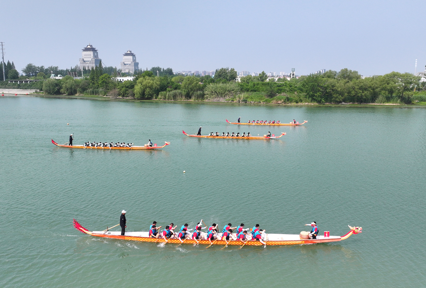 “水韵新城竞潮头”端午龙舟赛火热开赛。 王寒 孟德龙 摄