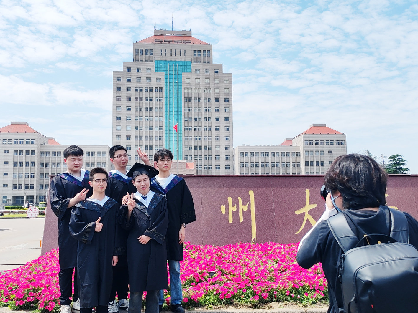 记者昨天在扬大荷花池校区采访时看到,扬大即将毕业的大学生,纷纷穿上学士服、硕士服和博士服,在学校大门前,拍照留影,留下在扬求学的美好回忆。简单的一次快门、齐声的一句句“茄子”,开心的笑容,定格在一张张相片上,纪念大学时光,挥别青春和母校。