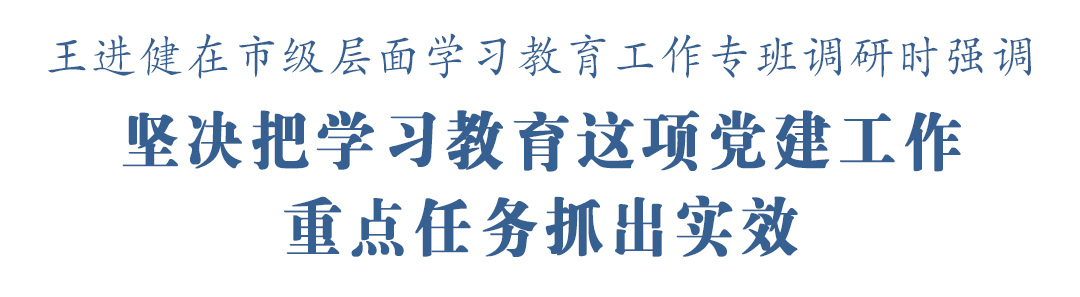 王进健强调,学习研讨要不松懈。要紧扣习近平总书记关于加强党的作风建设的重要论述和中央八项规定及其实施细则精神,对照中央和省级层面工作专班下发的文件通知和工作提示要求,持续深入学、及时跟进学、常态长效学,确保学习教育直抵基层末梢。检视整改要不松劲。要持续深入查摆,动态更新问题清单,把问题找准找实找具体。要从严整改整治,对“吃喝风”、违规收送礼品礼金、侵害群众利益、不担当不作为等突出问题,抓现行、抓典型、抓通报,一个问题一个问题整改到位。要深化开门教育,实实在在解决一批群众“急难愁盼”问题。警示教育要不松软。要突出见人见事、入脑入心,用好典型案例,开好全市警示教育会,用好廉洁文化资源,真正触及灵魂深处、达到警醒作用,把“看在眼里的教训”转化为“刻在心底的敬畏”。督促指导要不松手。要注重统筹协调,压实责任、督促落实,筑牢一级抓一级、层层抓落实的工作格局。要提升督导实效,督促被督导单位扛牢主体责任、推动问题解决。要强化宣传引导,及时总结提炼好经验好做法,以一个个具体的“人和事”展现工作成效。市级层面工作专班要牢记职责使命、严格自我约束,做到政治上特别过硬、能力上特别过硬、作风上特别过硬,切实保障全市学习教育扎实开展、见到实效。