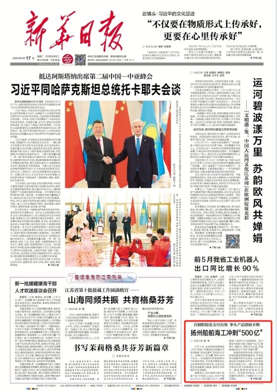 6月17日,《新华日报》刊发题为《扬州船舶海工冲刺“500亿”》的文章。扬州发布现全文转发,以飨读者。