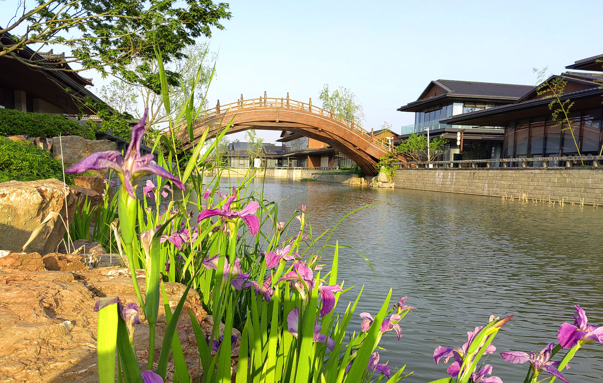 昨天,记者看到,大运河非遗文化园二期工程即将竣工。二期项目延续了一期的建筑风格,既有古典风韵,也有现代元素,与三湾景区交相辉映。