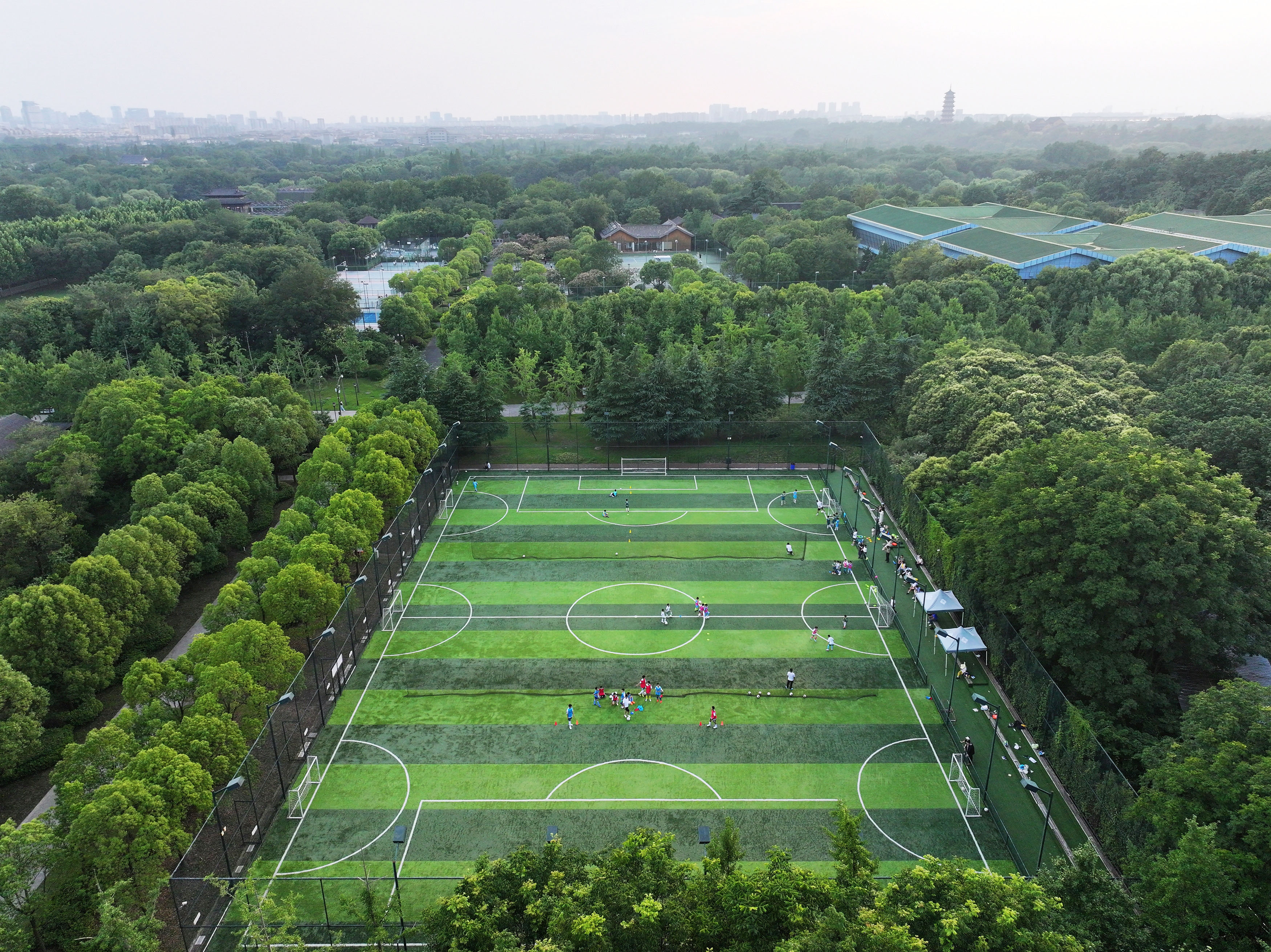 自“苏超”赛事走红以来,许多小朋友走进宋夹城体育休闲公园,学习足球知识,参与足球训练,感受足球魅力,畅享足球运动带来的乐趣。 孟德龙 摄