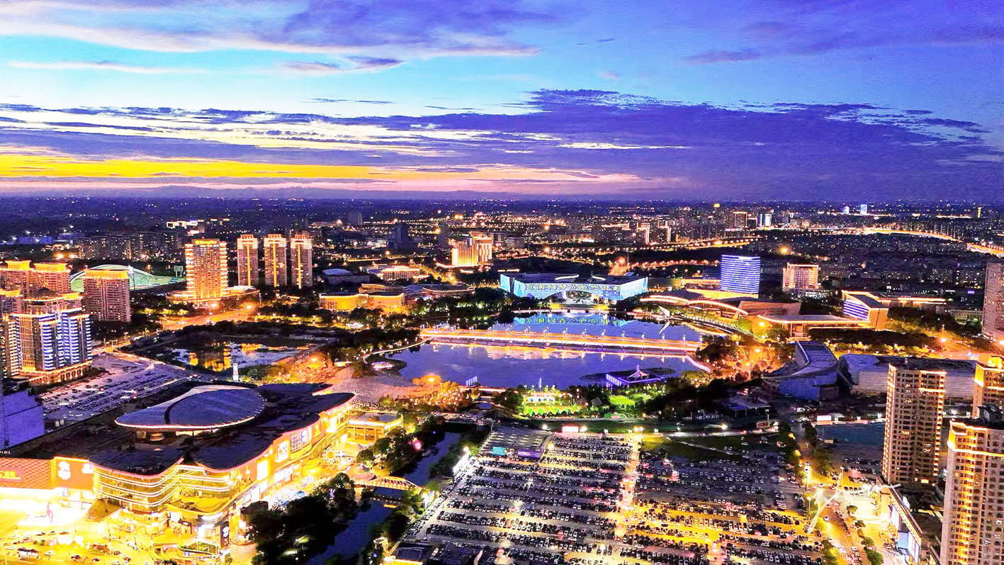 夜幕降临,综合体的霓虹、公园的景观灯、游乐场的彩灯等交相辉映,璀璨的都市光影与熙攘的人流共同编织出一幅现代都市的繁华画卷。