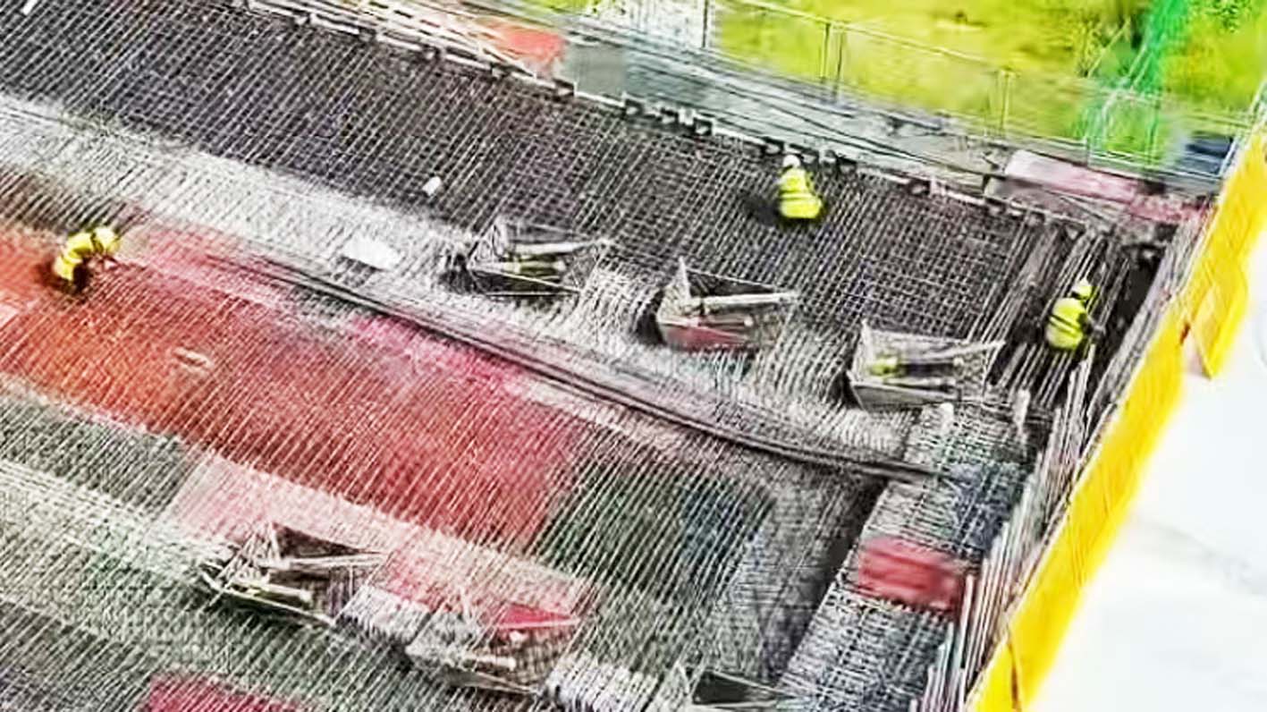 连日来,持续高温。在万福快速通道东延工程施工现场,建设者们头顶烈日、脚踏热浪,以“与时间赛跑”的姿态抢抓工期。7月16日,记者通过无人机航拍镜头记录下这幅震撼人心的“高温施工图景”。施工现场,塔吊与架桥机组成钢铁方阵,工人们正进行施工作业。蜿蜒的施工便道犹如一条奋斗的轨迹。每一滴砸向钢筋的汗水,都在为扬州“东翼腾飞”浇筑坚实基础。这些高温下的坚守者,用行动诠释着“战酷暑保进度”的城建担当。 张志远 崔根元 摄