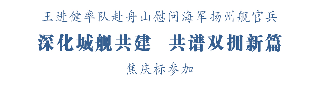 在随后召开的“城舰共建”座谈会上,王进健代表市委、市政府和458万扬州人民,向忠于职守、默默奉献的全体扬州舰官兵致以崇高敬意和诚挚问候。他表示,习近平总书记强调,军民融合发展是兴国之举、强军之策。城舰共建更是通过制度化的安排,成为新时代军民融合的生动实践。自2015年扬州舰命名入列以来,扬州始终致力成为扬州舰的温暖港湾,着力打造了“绿扬尊戎”“千里拥军”等特色品牌,成功创成全国双拥模范城“九连冠”;扬州舰官兵始终心系第二故乡,大力宣传扬州人文底蕴与发展成就,成为扬州海上流动的“城市名片”。十年来,扬州与扬州舰同舟共济、携手前行,谱写了新时代双拥共建的华彩乐章。