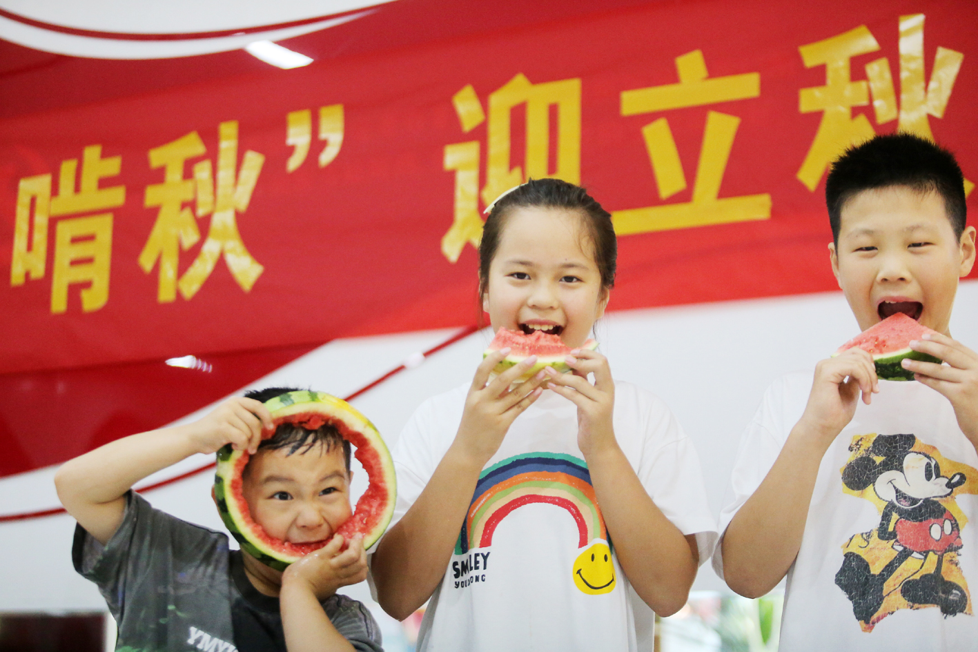 8月6日,“立秋”将至,徐凝门街社区开展“啃秋”吃西瓜活动,小朋友们欢聚一堂,一起吃西瓜“啃秋”,表达“啃下酷夏、迎接秋爽”的愿望。
