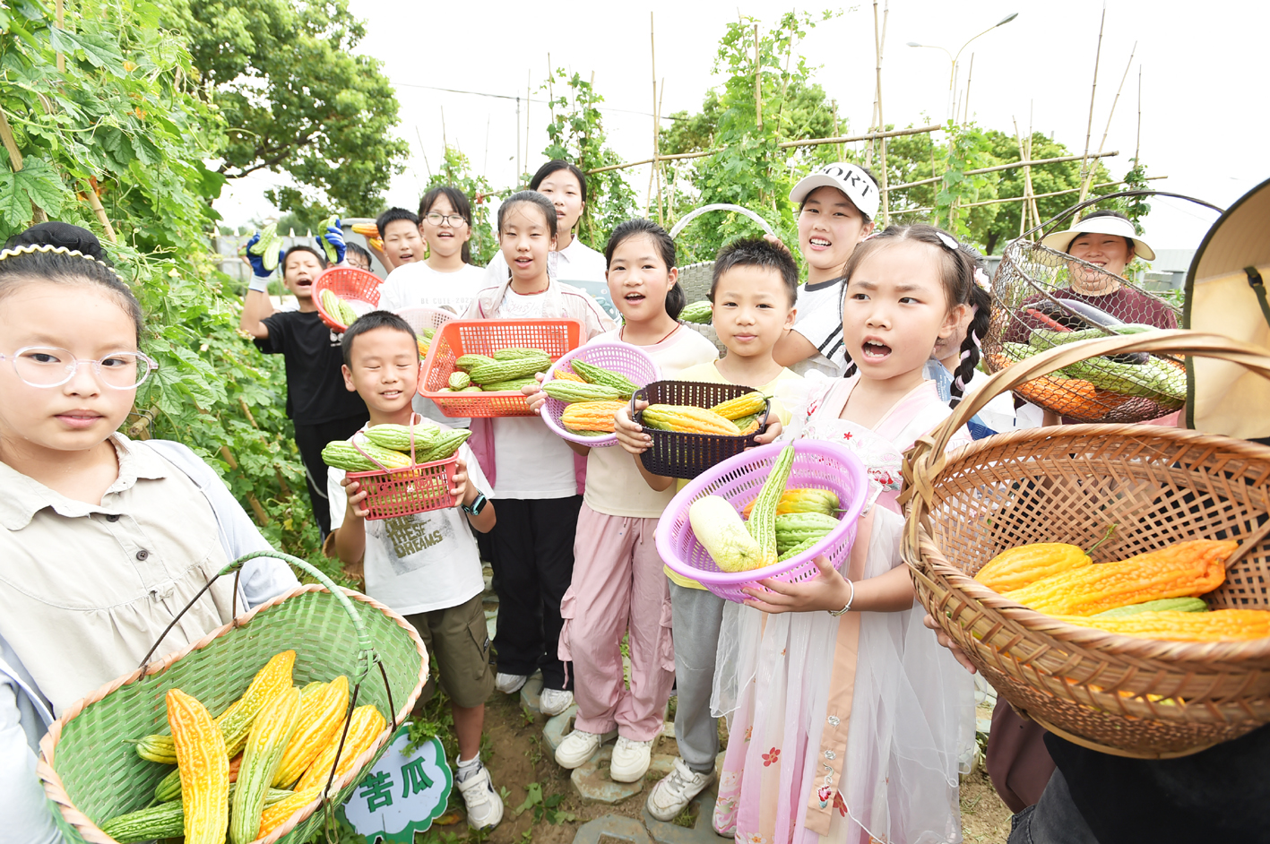 连日来,江都区郭村镇周楼小学开展暑期“三色篱”特色劳动教育实践活动,采取“大手牵小手”——亲子共育的形式,通过聆听红色故事、体验劳动采摘、制作苦瓜美食等特色劳动实践内容,感悟革命先辈的保家卫国、艰苦奋斗精神,珍惜当下幸福生活。 庄文斌 摄
