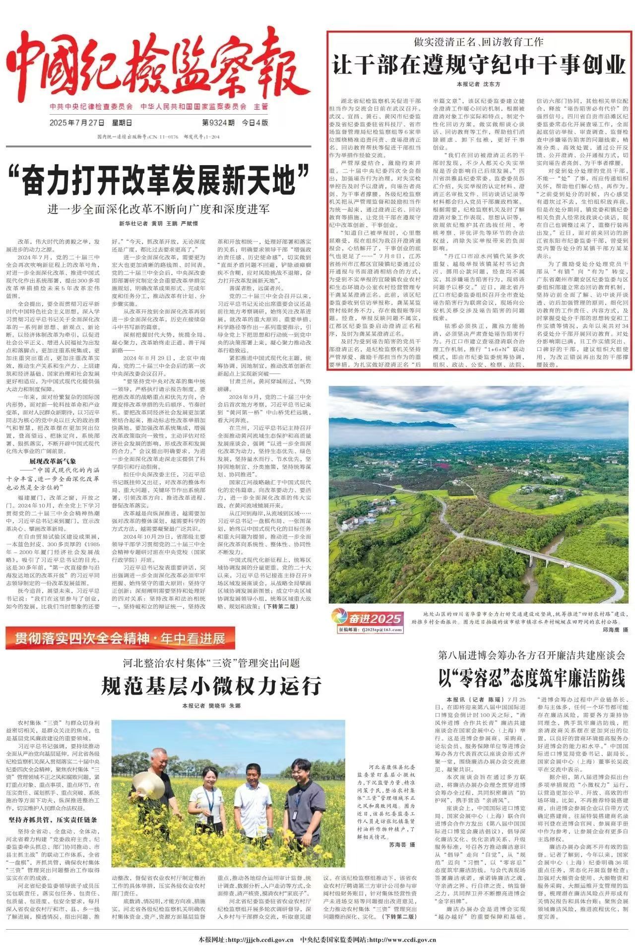 严管厚爱结合,激励约束并重。二十届中央纪委四次全会指出,加强诬告行为治理,对失实检举控告及时予以澄清,向诬告者亮剑、为干事者撑腰。各级纪检监察机关把从严管理监督和鼓励担当作为统一起来,通过澄清正名、回访教育等措施,让党员干部在遵规守纪中改革创新、干事创业。