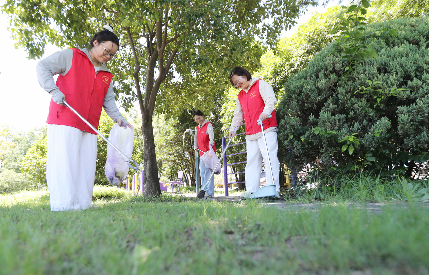 8月14日,在全国生态日来临之际,广陵区徐凝门街社区的志愿者们通过巡河护水、清理杂物垃圾,以实际行动保护生态环境,守护美丽家园。 孟德龙 摄