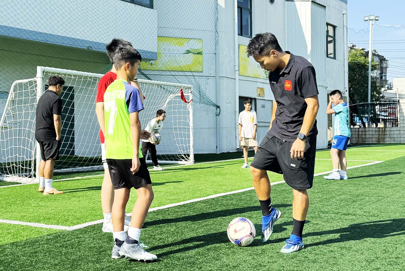 “射门——进啦!”“再来一个,又进了!”8月20日清晨,文津中学足球场上传来阵阵欢呼。广陵区曲江街道沙南社区党总支、社区关工委联合沙口小学举办的“苏超‘童’行,绿茵筑梦”活动,点燃了30多名孩子的热情。“苏超”扬州队前卫王皓、守门员赵煦特意在集训前挤出时间赶来,与社区孩子们趣味互动并指导训练。 胡慧 刘峰生 摄