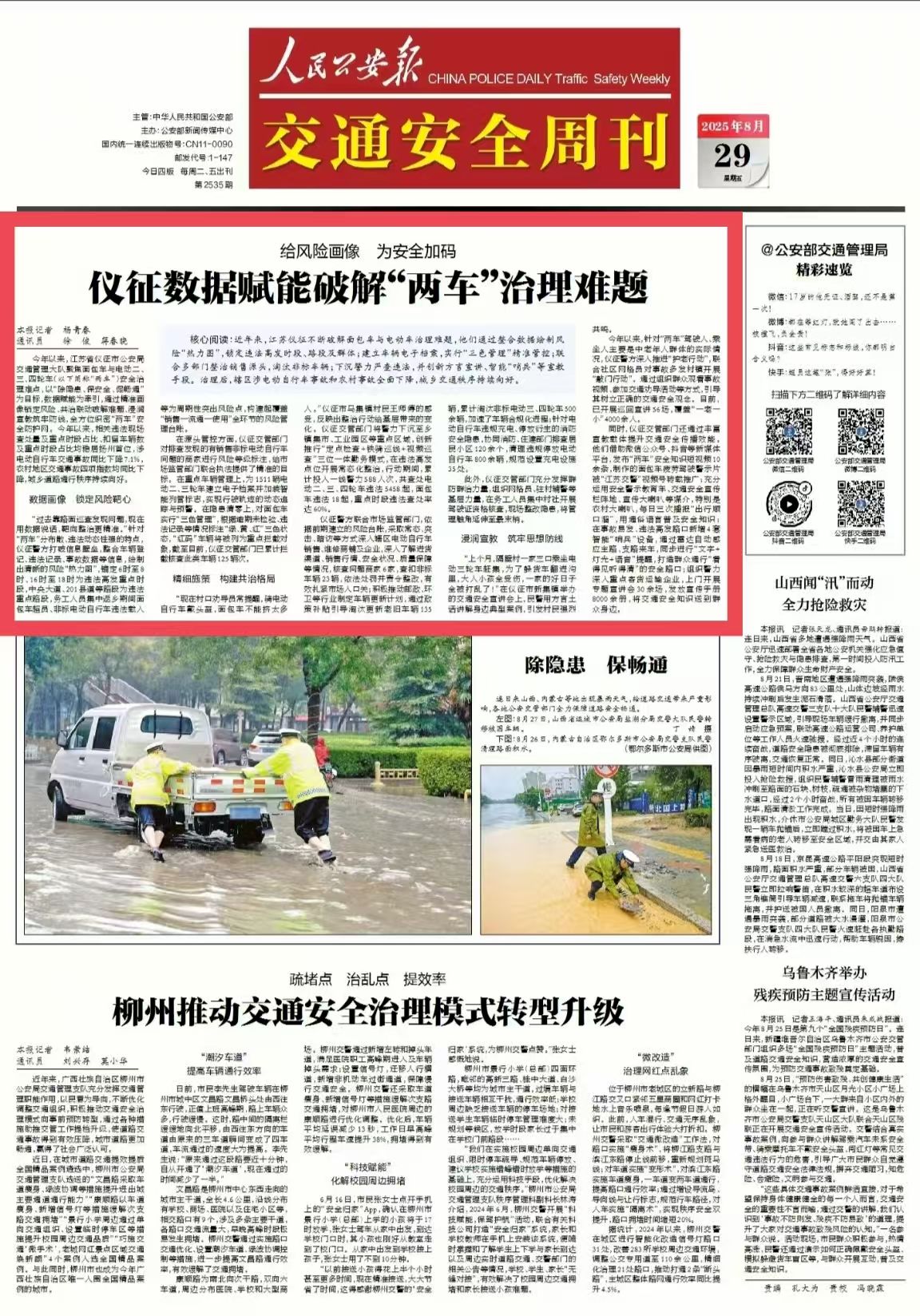 8月29日,《人民公安报》交通安全周刊刊发《仪征数据赋能破解“两车”治理难题》,近年来,扬州仪征不断破解面包车与电动车治理难题,辖区涉电动自行车事故和农村事故全面下降,城乡交通秩序持续向好。