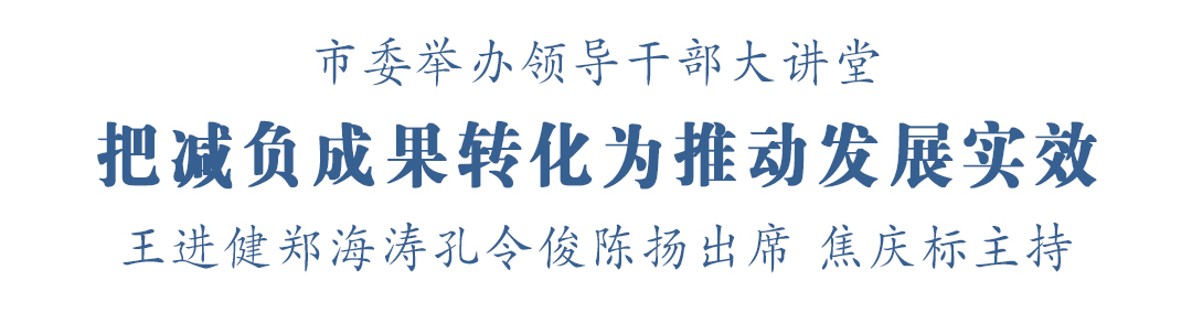 9月1日下午,市委举办领导干部大讲堂,深入学习贯彻习近平总书记关于整治形式主义为基层减负的重要指示精神,认真落实党中央决策部署和省委工作要求,协同推进为基层减负、赋能、提质,切实把减负成果转化为推动高质量发展的实效。市委书记王进健,市委副书记、代市长郑海涛,市人大常委会主任孔令俊,市政协主席陈扬出席。市委副书记、秘书长焦庆标主持。