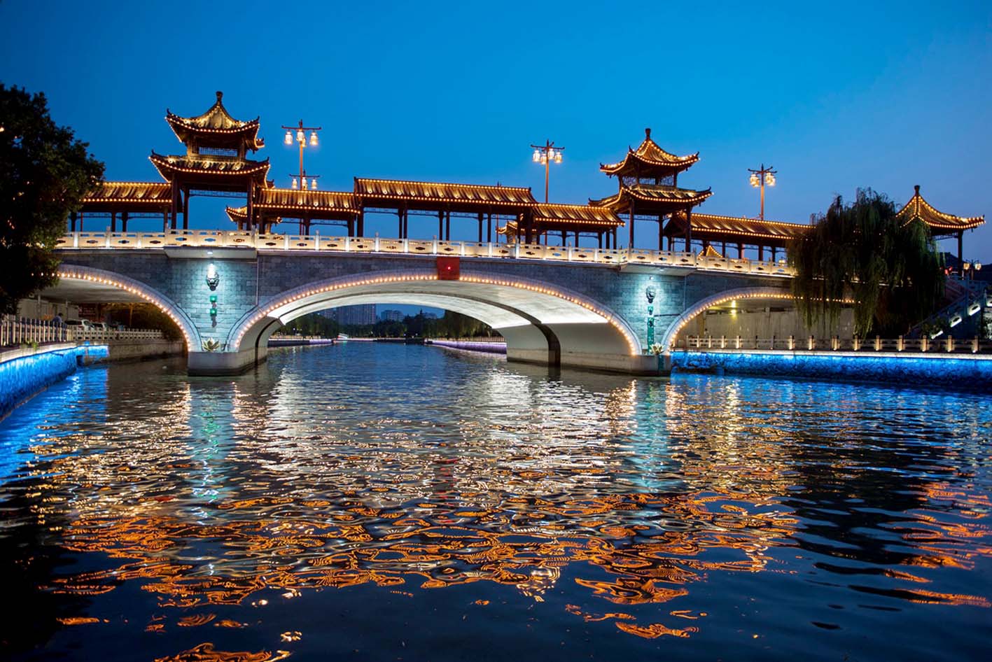 已陪伴扬州市民走过六十余载的跃进桥,亭廊错落、宫灯高悬,如今已成为兼具通行功能与文化韵味的城市新地标。