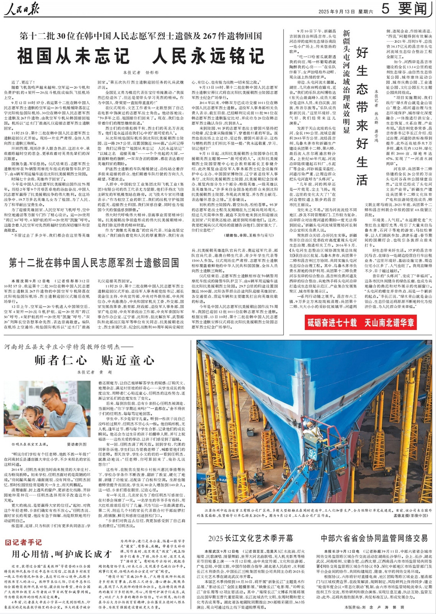 9月13日,《人民日报》刊发了扬州市新闻传媒中心摄影记者拍摄的扬州船企生产忙的图片。图片说明中写道:江苏扬州中远海运重工有限公司厂区内,多艘大型船舶正在同时建造中,工人们加紧生产,全力保障订单完成进度。目前,该公司来自国外的集装箱船、散货船等订单已排至2028年。