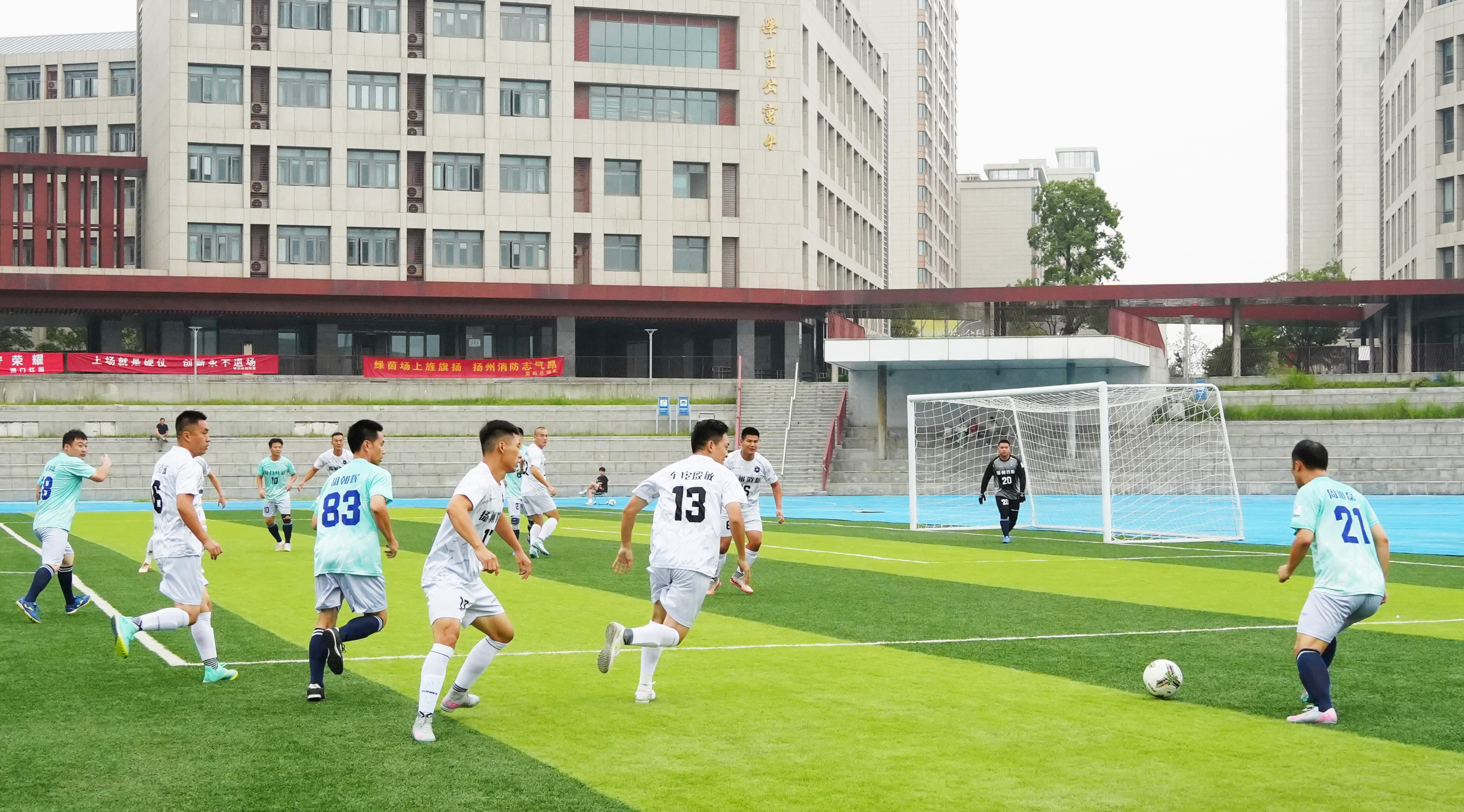 9月14日,“扬超”机关组在邗江中学体育场重燃战火。经过激烈拼搏,在分别进行的两场比赛中,“蓝焰足球队”3:1战胜“国门红盾队”,“前卫FC队”1:0战胜“励合FC队”。