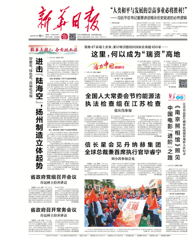 编者按:9月19日《新华日报》头版头条以主题《进击“陆海空”,扬州制造立体起势》对扬州致力发展汽车、船舶、航空产业进行深度报道,聚焦扬州以智能化、绿色化、高端化为引领,在长三角产业创新版图上标注出鲜明的“坐标系”。现予以全文转载,以飨读者。