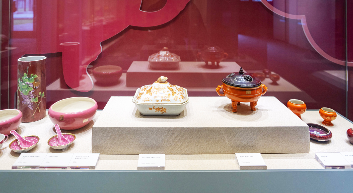 天王殿的“民俗展·不美不成器”是百姓的生活雅集。这里聚焦晚清民国时期的民间瓷器,以中国传统哲学中的“五行”观念——金、木、水、火、土为内在脉络,对应着白、青、黑、赤、黄五种“正色”。展厅内,“金之雅·白釉瓷器”“木之清·青釉瓷器”“水之沉·黑釉瓷器”“火之炽·红彩瓷器”和“土之彩·黄釉瓷器”,就像一面面镜子,真实映照出晚清到民国扬州的市井生活。读书人用的乌金釉笔筒,老百姓用的白刻瓷盘碟,富裕人家的粉彩百鹿尊、天球瓶……这些场景拼在一起,就是一幅“老扬州生活画卷”。