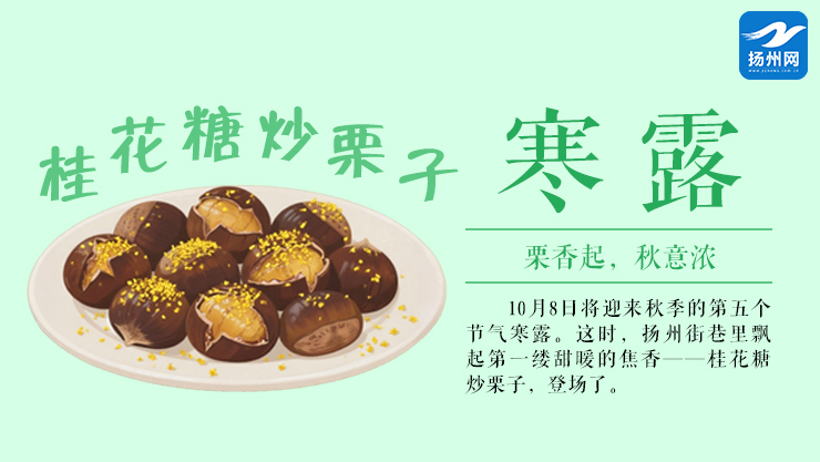 10月8日将迎来秋季的第五个节气寒露。这时,扬州街巷里飘起第一缕甜暖的焦香——桂花糖炒栗子,登场了。