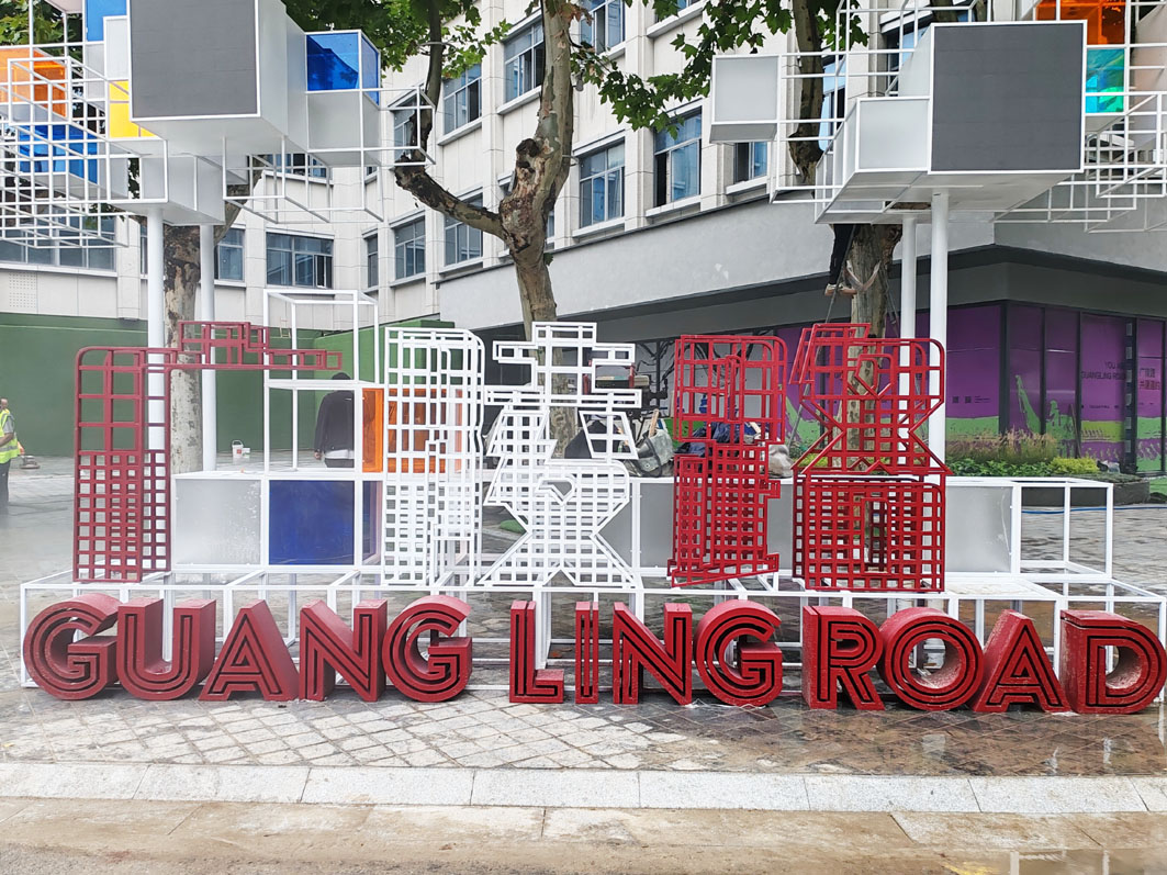 记者在现场看到,群艺会馆楼下广场更新升级改造完成,重新摊铺地面砖后,广场焕然一新,四周还增添了造型各异的花箱,里面栽种了各种鲜花,将广场打扮得多姿多彩。靠近广场的地方,设立了一个醒目的地名标识牌,上面有“广陵路”三个大字,“广”与“路”两个字为红色,“陵”字为白色,下面是“广陵路”英文字母。
