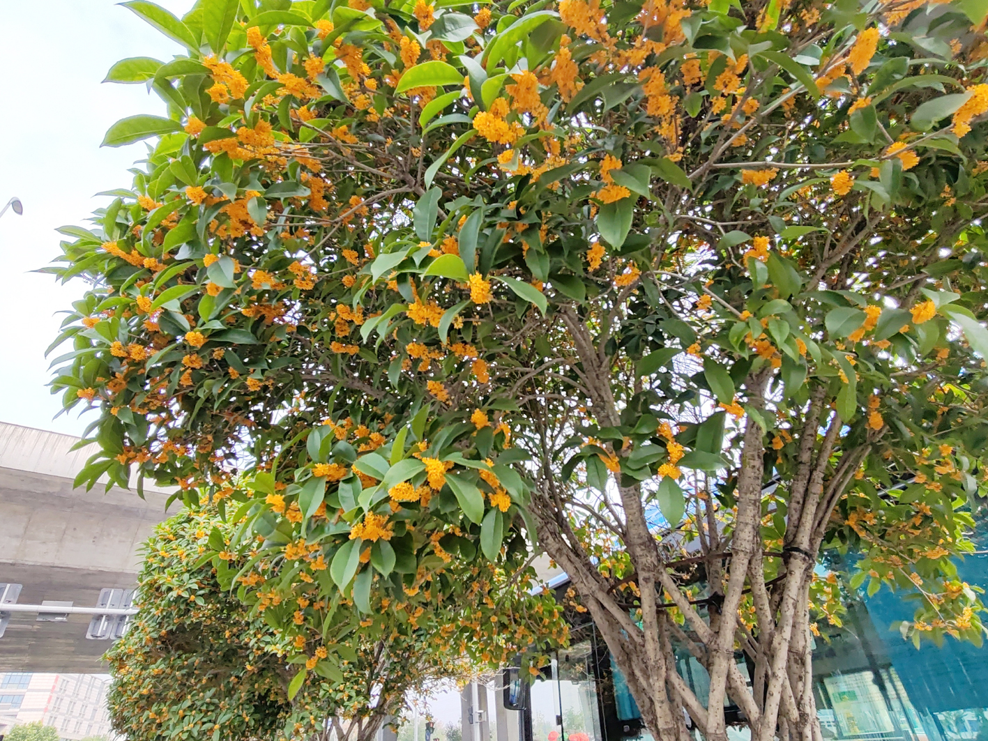 道路边栽种桂花树的,还有吉安路。吉安路上栽种的桂花树,大多是编织花篮造型,并且品种是金桂。但沿线桂花还没有大面积盛开,全部盛开后,不仅花香迷人,造型也比较漂亮。