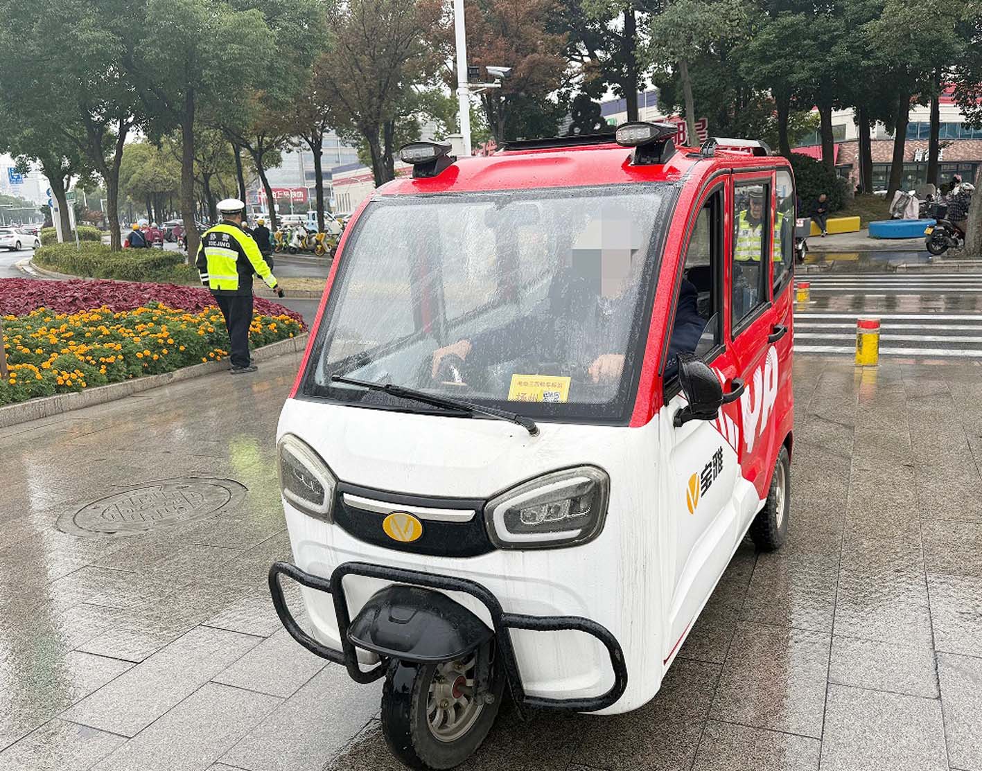 民警在来鹤台岗路口看见一辆红白相间的电动三轮车摇摇晃晃驶来,立即拦下。从外观看,该车底盘不稳,车身缝隙还粘贴胶带防止漏雨,没有悬挂任何号牌,甚至车辆后视镜都坏了。往车内看去,竟发现车内还架着一部手机正在播放视频。“合格证有吗?有驾照吗?”面对询问,大爷顿时傻眼。民警建议,“为了自身安全,请不要驾驶或乘坐不符合安全标准的电动三轮车、四轮车。应选择合法合规的交通工具,如国标电动车和自行车,以保障自身安全。”