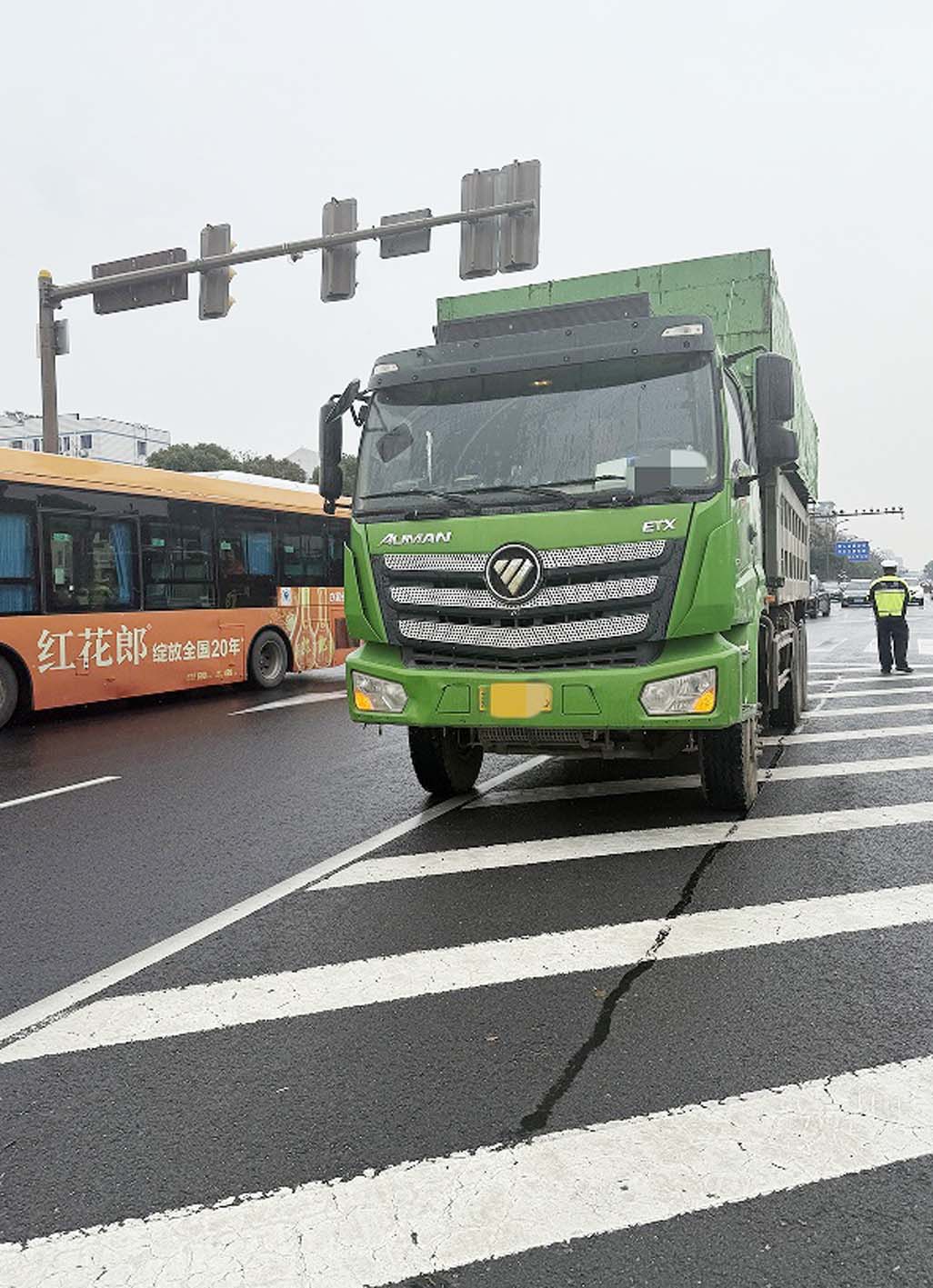随后,一辆从邗江路左转弯驶入文昌西路的渣土车引起民警的注意。民警上前引导这辆渣土车停靠在路边。驾驶员下车后,承认该车没有渣土车通行证,“刚刚在附近一个小区拉了几吨建筑垃圾。”依据相关规定,这名渣土车驾驶人因驾驶机动车违反禁令标志指示的违法行为,被处以罚款100元,驾驶证记1分。