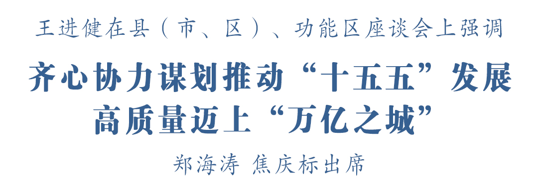 11月3日,市委书记王进健主持召开县(市、区)、功能区座谈会。他强调,要深入学习贯彻党的二十届四中全会精神,齐心协力谋划推动“十五五”发展,高质量迈上“万亿之城”。市委副书记、市长郑海涛,市委副书记、秘书长焦庆标出席会议。