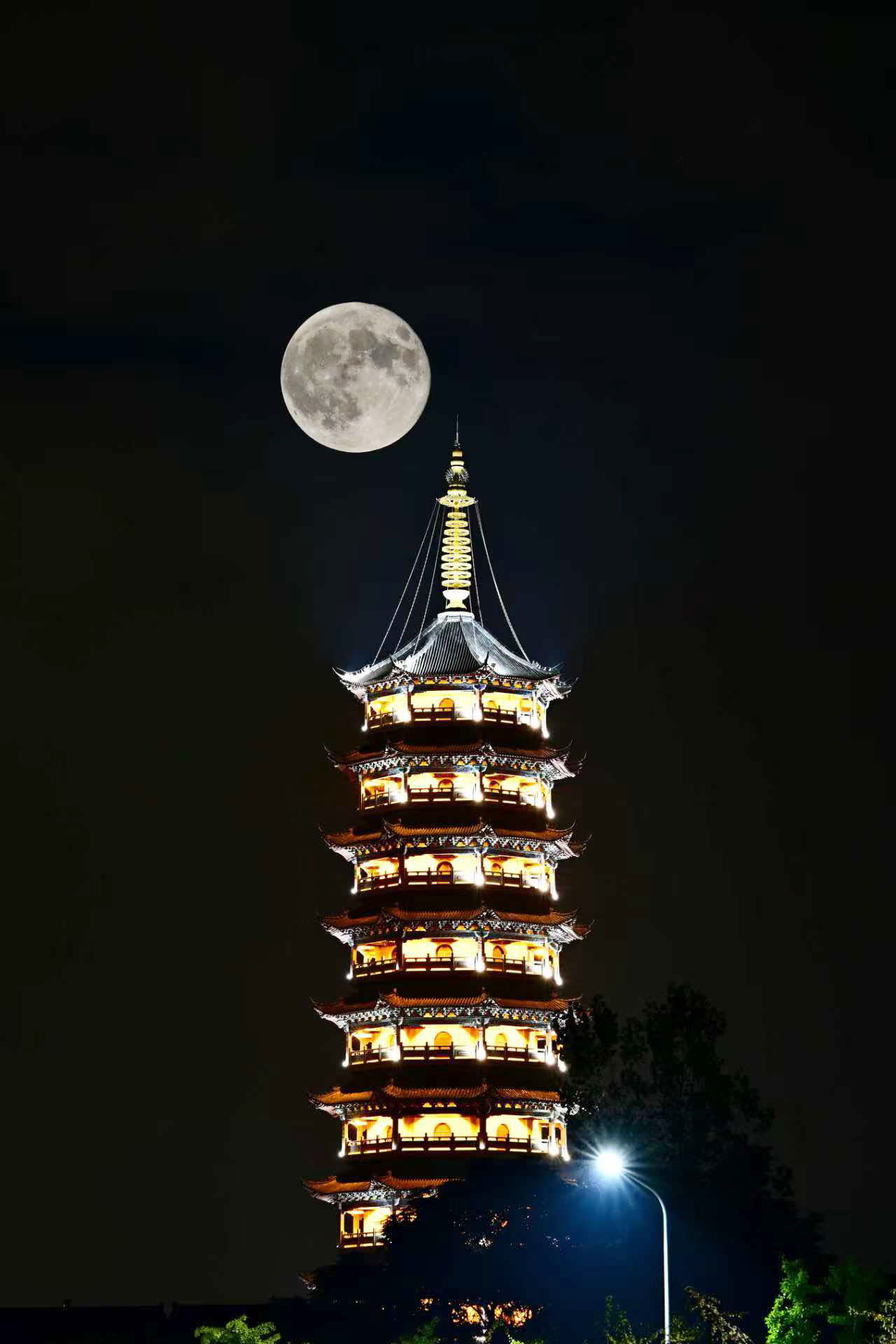 在江都区大桥镇开元寺拍到的“超级月亮” 蒋小勇 崔根元 摄