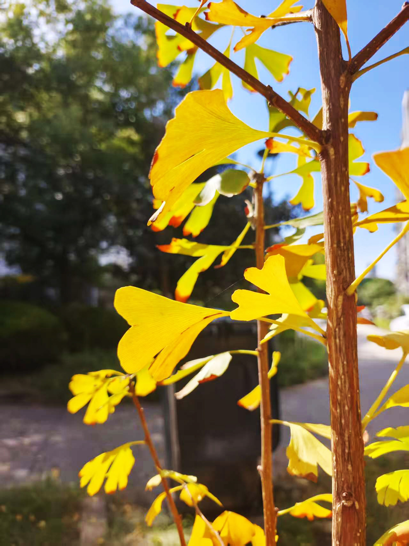 到了深秋,扬州的银杏叶镀上了金色,金黄的叶色加上扇形的叶片,精美雅致。