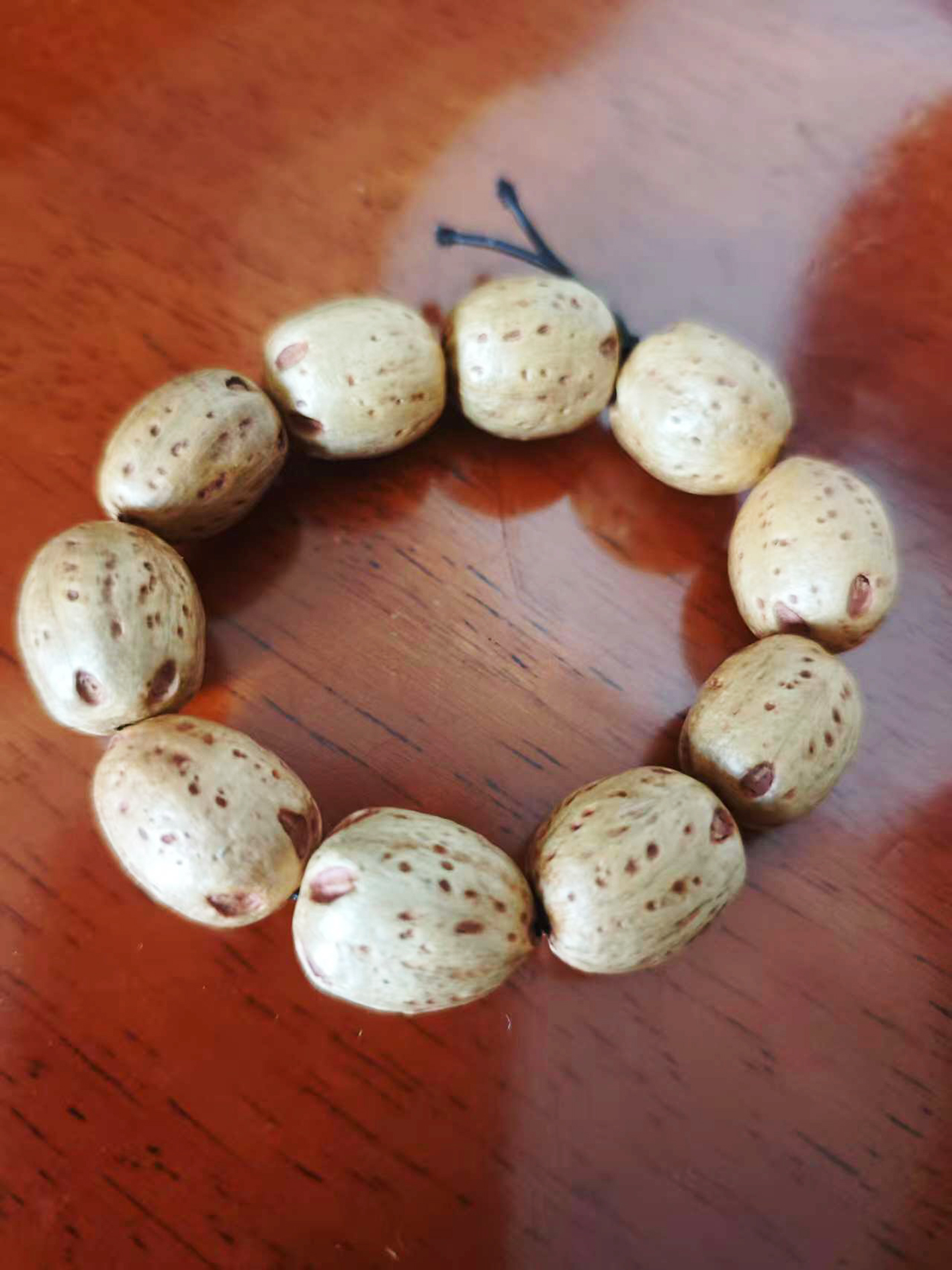 除了制作枣核炭,南酸枣果核还被人们称为“五眼菩提”,因为天然有5个小孔,加上果核坚硬,常用来制作手串。