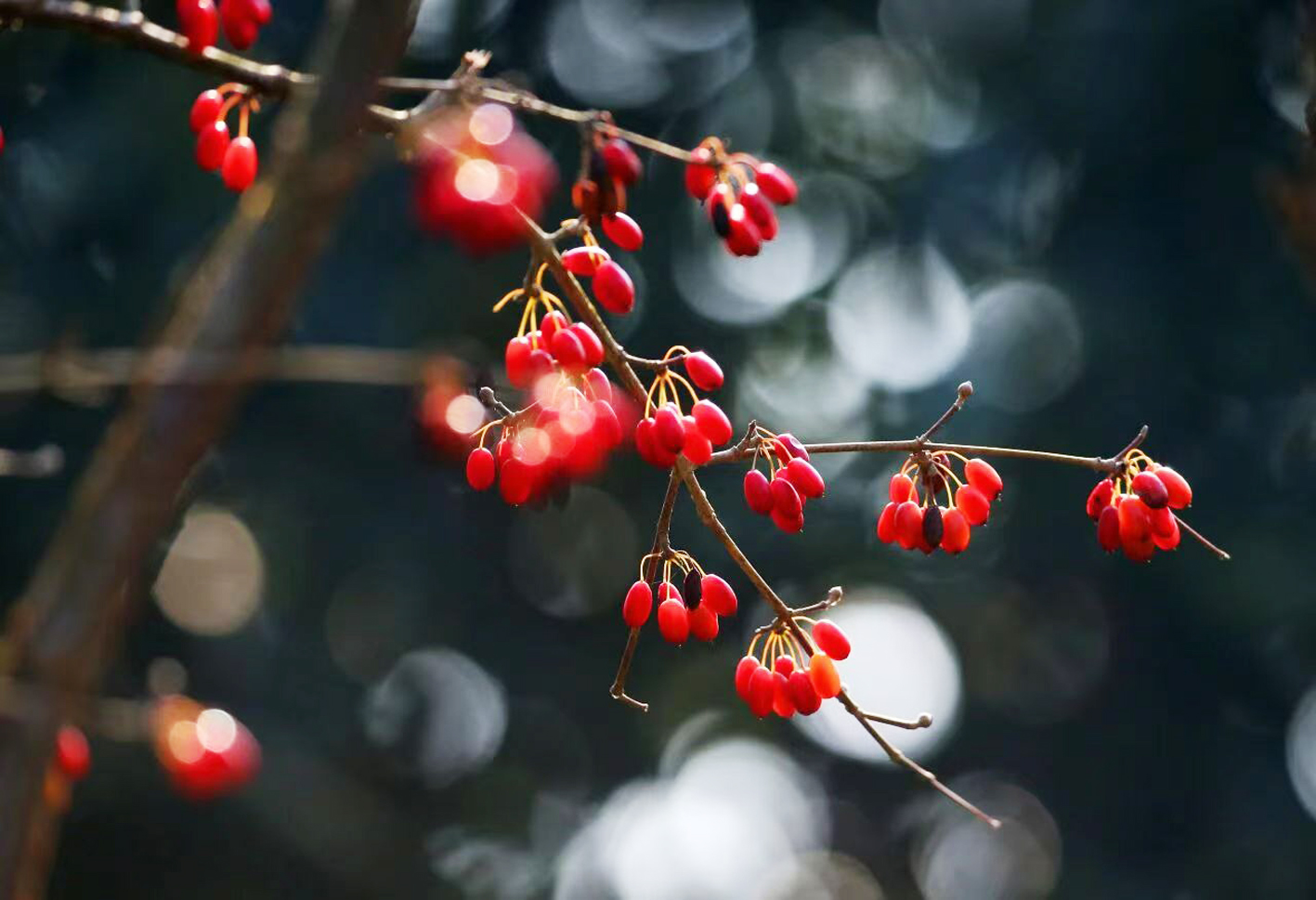 山茱萸果是常见药用果,而其红果也颇具观赏性,尤其是叶落后依然有许多红果在枝头“逗留”。琼花是扬州市花,琼花果在秋天变红,虽然颜色略暗,但在晴好天气下,也是“满果红光”。红果冬青,最为“长情”的红果,可以在枝头一直红到明年1月。另外,扬州秋季常见的红果还有兰天竹、扶芳藤、枸杞、枸骨、丝棉木、红豆杉等。 记者 向家富