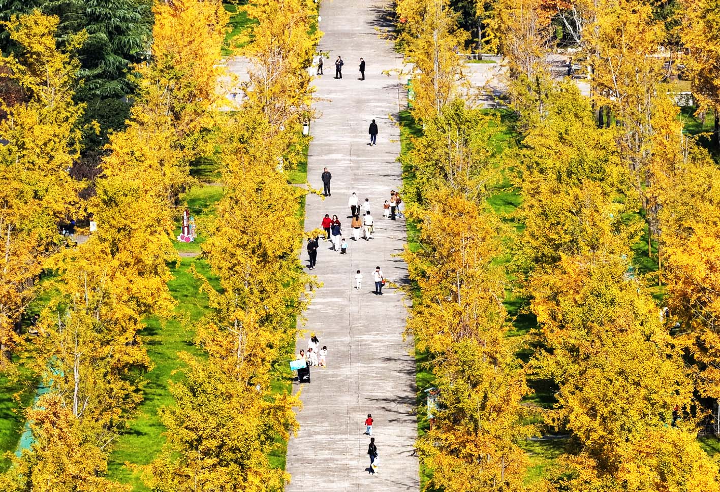 初冬时节,银杏迎来一年中最璀璨的绽放。金黄的叶片层层叠叠缀满枝头,在阳光下泛着丝绸般的光泽,如同一幅金色的画卷,吸引了许多游客前来观赏。 孟德龙 摄