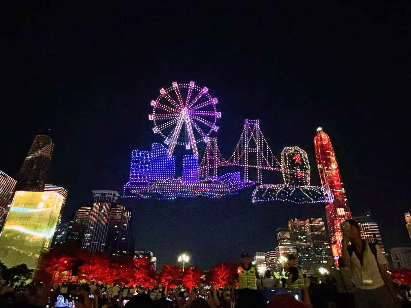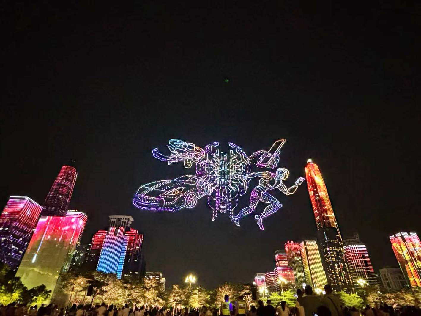 绚烂的无人机表演场景。李彬彬 摄