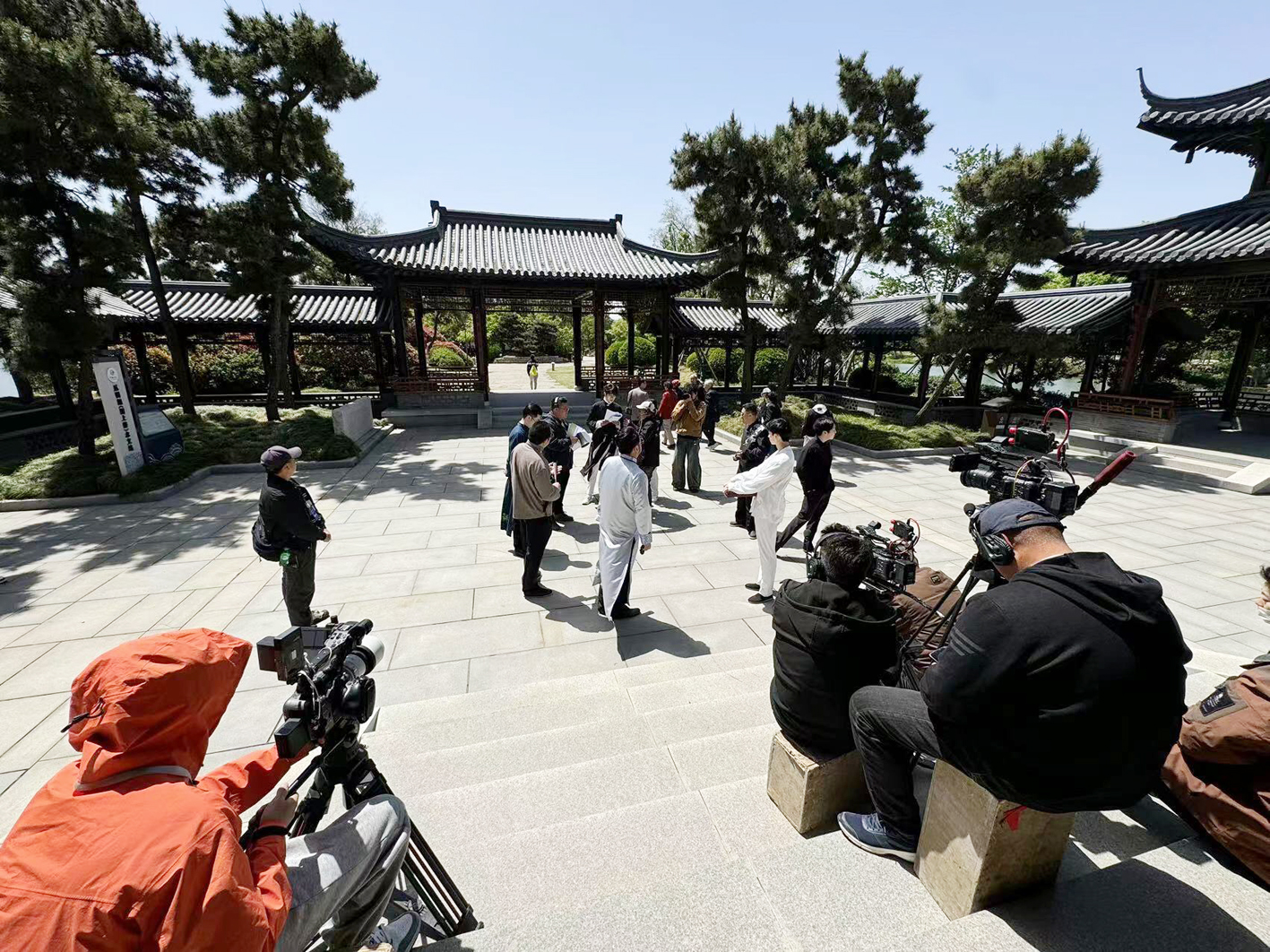 剧组在瓜洲古渡公园取景。钱伟 摄