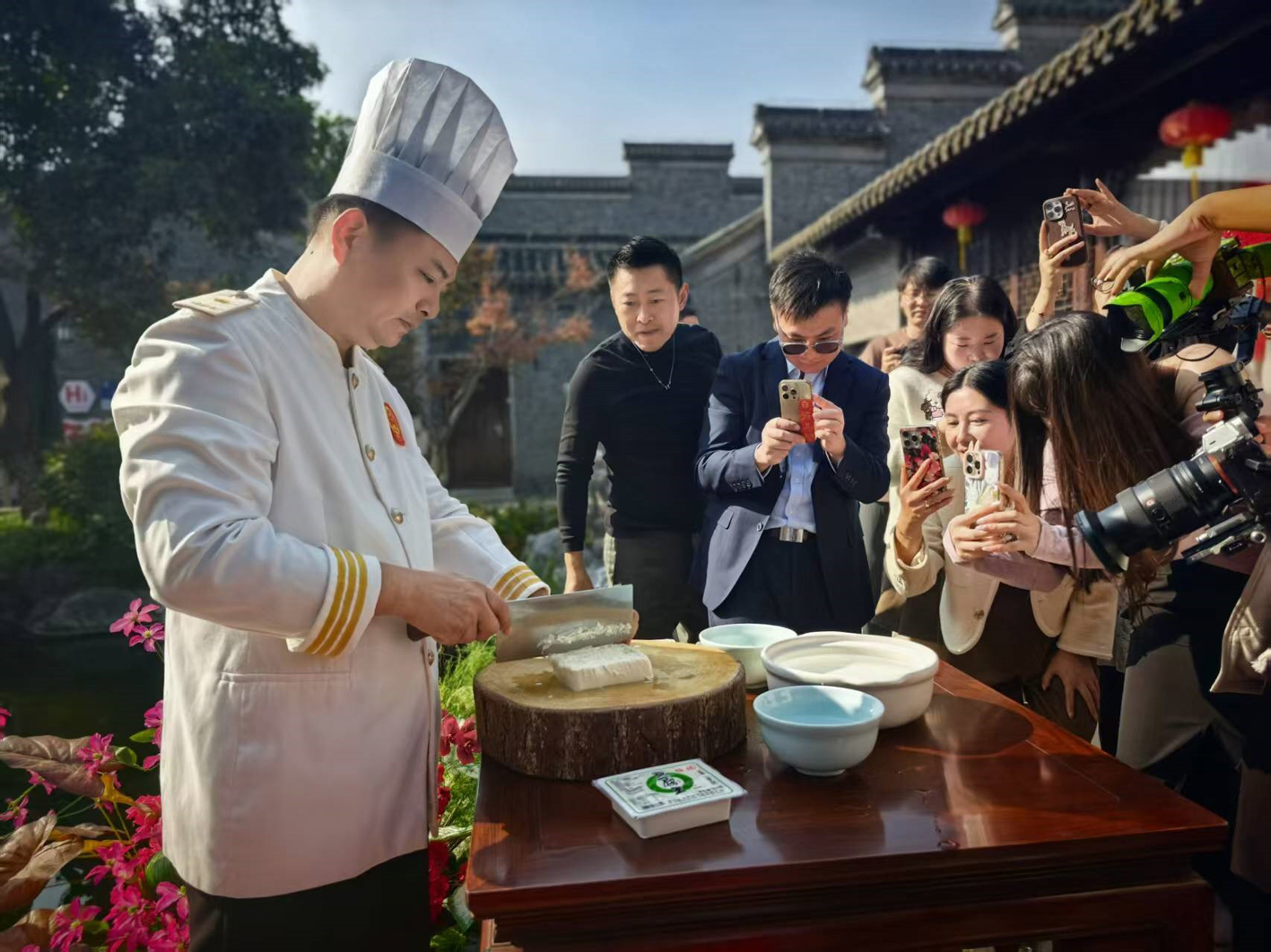大厨现场制作菊花豆腐。屠明娟 摄
