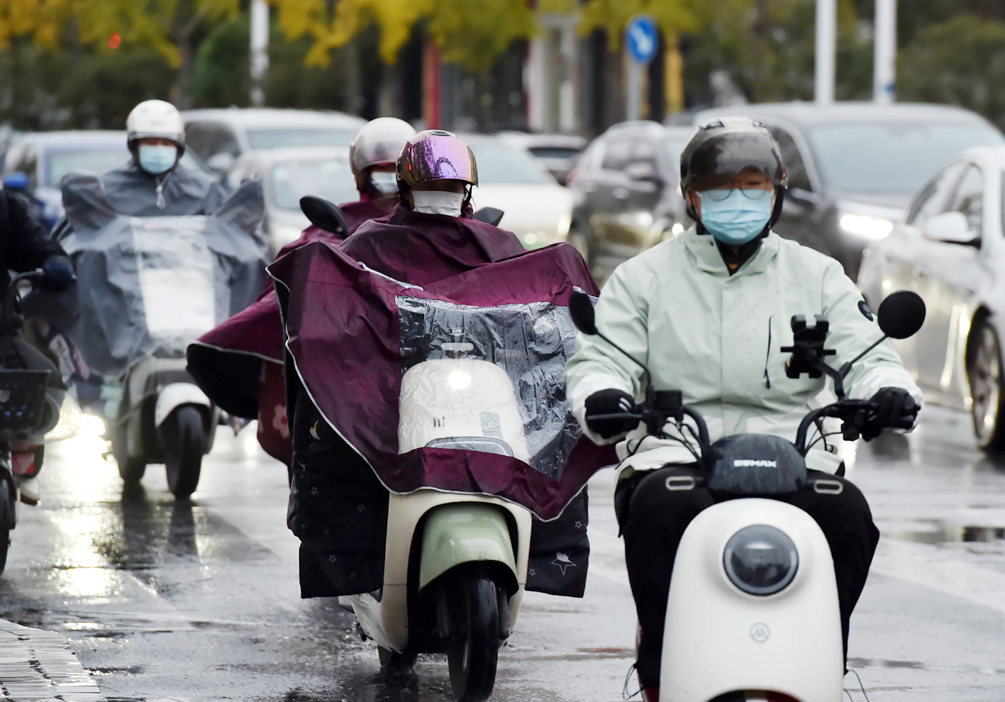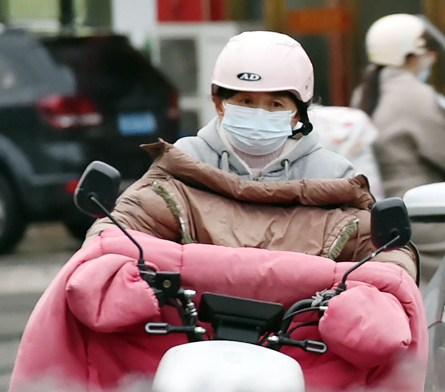 我市出现降雨及大幅度降温天气,出行的市民“全副武装”。 庄文斌 摄