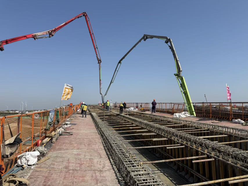 记者从宁盐高速扬州段项目部获悉,近日,随着混凝土源源不断地注入钢筋绑匝的模板内,陈集北枢纽第18联现浇箱梁成功完成了浇筑。至此,陈集北枢纽现浇箱梁全部施工完成,标志着该枢纽桥梁主体结构实现贯通,为后续工程奠定了坚实基础。