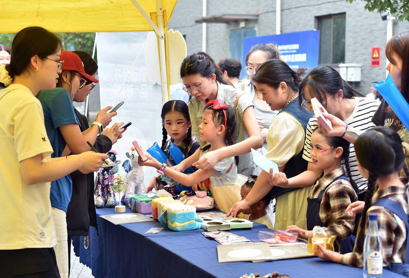 比赛球场外,文创、美食摊位吸引球迷采购。 庄文斌 摄