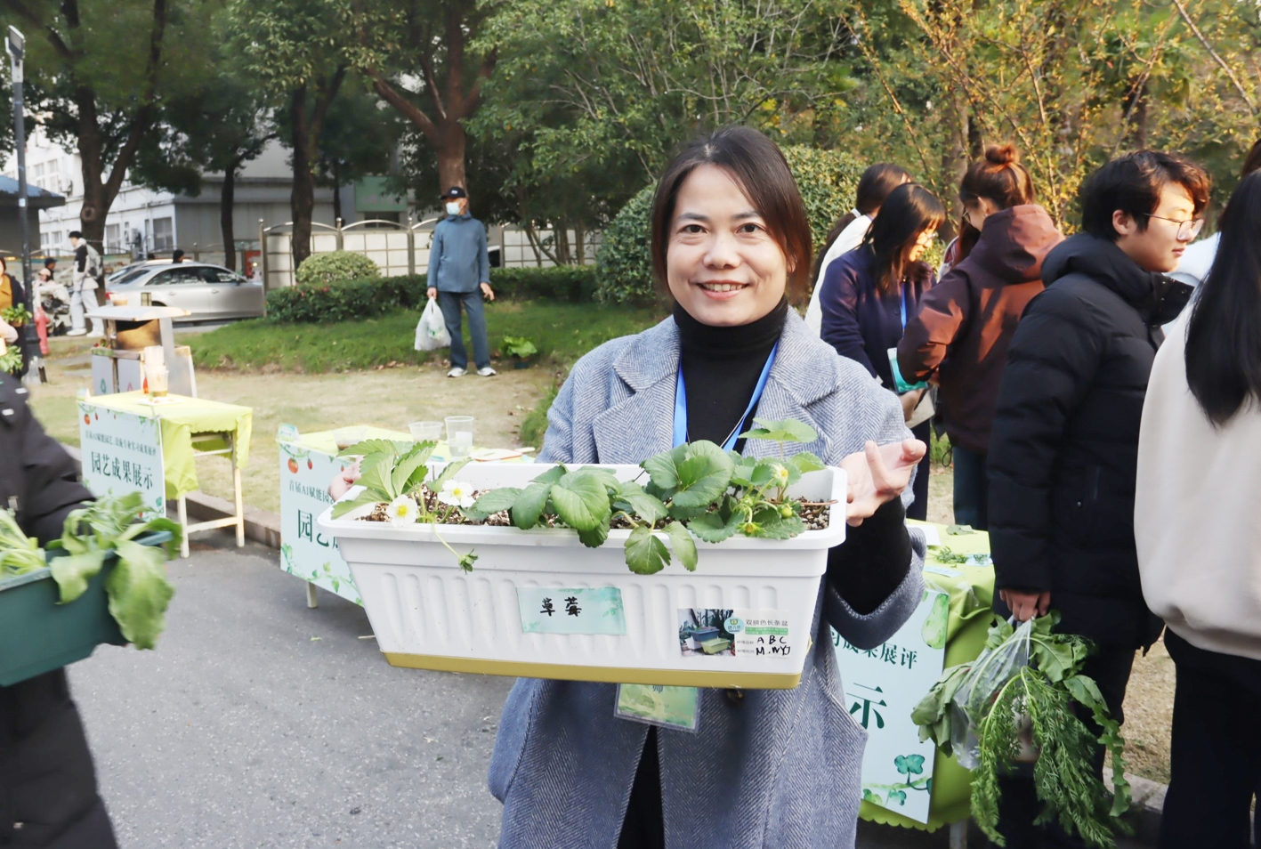 “大家看这盆罗勒,叶片油亮,香气浓郁,这是因为我们根据AI反馈的光照数据,调整了温室大棚的遮阳网使用时间。”学院老师许学文介绍,他们根据不同植物的生长习性,量身定制“AI植物”,“不同的植物,对水、肥、光照、温度的要求不尽相同。”
