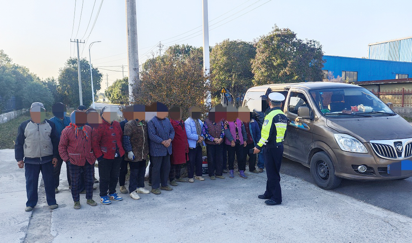 11月19日下午3点43分,高邮市公安局交管大队开发区中队民警许永勤及队友处警回中队途中,警车行驶至澄营线龙虬段时发现一辆由南向北的面包车摇摇晃晃驶来,从外向里看车内黑压压的一群人。怀疑面包车存在超员的违法行为,民警有所警觉。随即示意该车靠边停车接受检查。