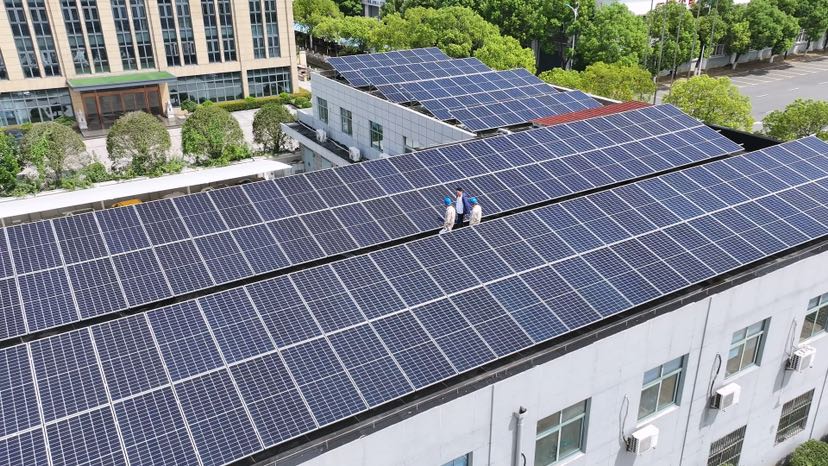 “绿”即绿色化。在宝应,屋顶上长出了一条富民之路。全县建成8个“绿电厂房”项目,屋顶光伏累计并网发电容量2.7万千伏安。1度电,可减少碳排放量约882克,绿色的房顶“上产绿,下产金”。如今,宝应以37.99元的度电产值位居全市首位。