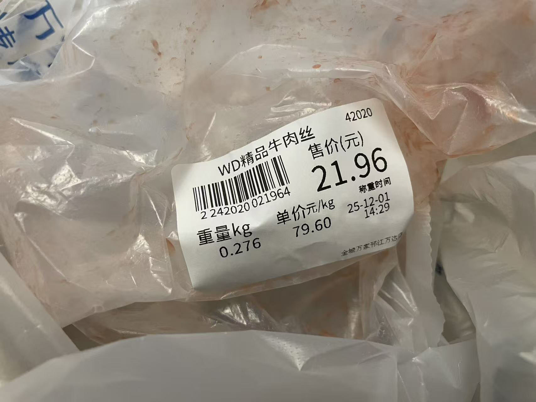 “我是12月1日下午在这家超市购买的牛肉丝。”网友“琥珀川”告诉记者,这家超市位于邗江路万达广场二楼。这份牛肉丝,她花了20多元钱。回家后,她就对牛肉丝进行了妥善储藏。当天晚上,她将牛肉丝取出,并进行炒制。但让她没想到的是,在炒制过程中,她闻到了一股异味。