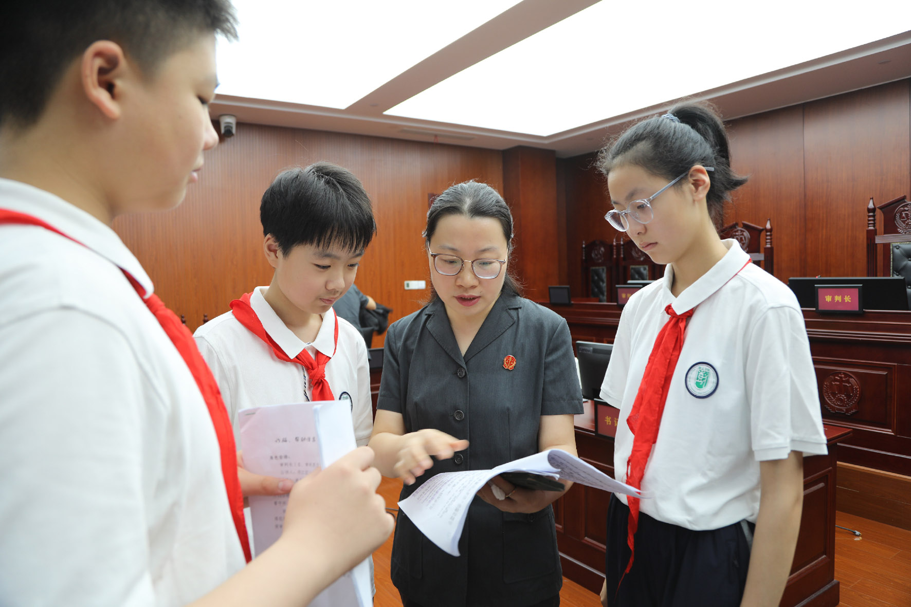 “法者,治之端也。欢迎同学们来到邗江法院,首先,大家来认识一下‘法’字的字形演变吧!”2025年7月29日,扬州中院联合邗江法院举办法院开放日活动,来自树人学校的40多名初中生走进庄重严肃的人民法院。