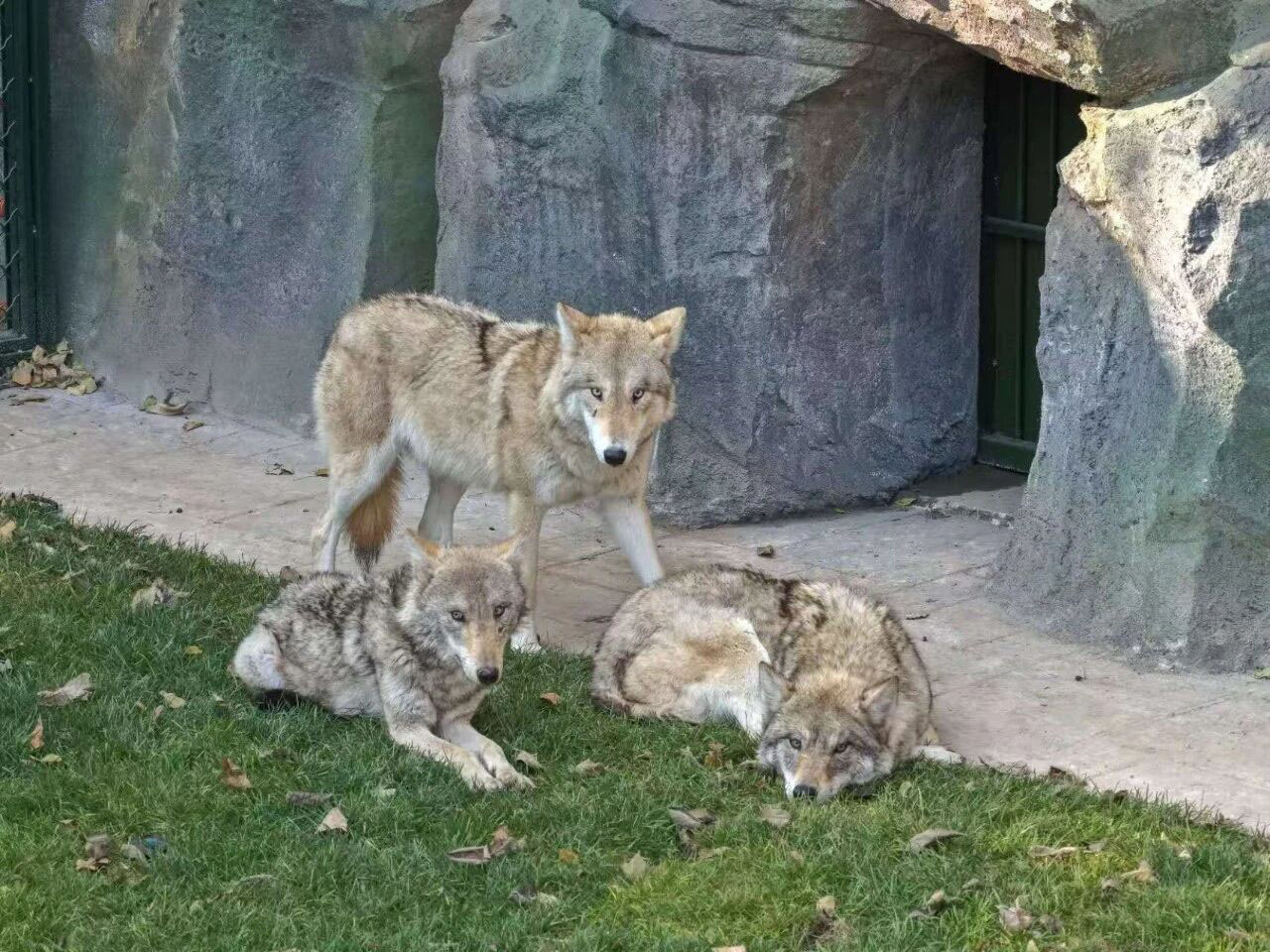 新区创新设计的双层参观通道成为最大亮点。上层俯瞰:灰狼家族在开阔草坪上追逐嬉戏,尽显自由奔放的野性;下层漫步:斑鬣狗在林间从容踱步,薮猫凭借修长四肢在栖架间轻盈跳跃,金钱豹则弓起矫健身躯,肌肉线条与锐利目光尽显“百兽之王”的威慑力。