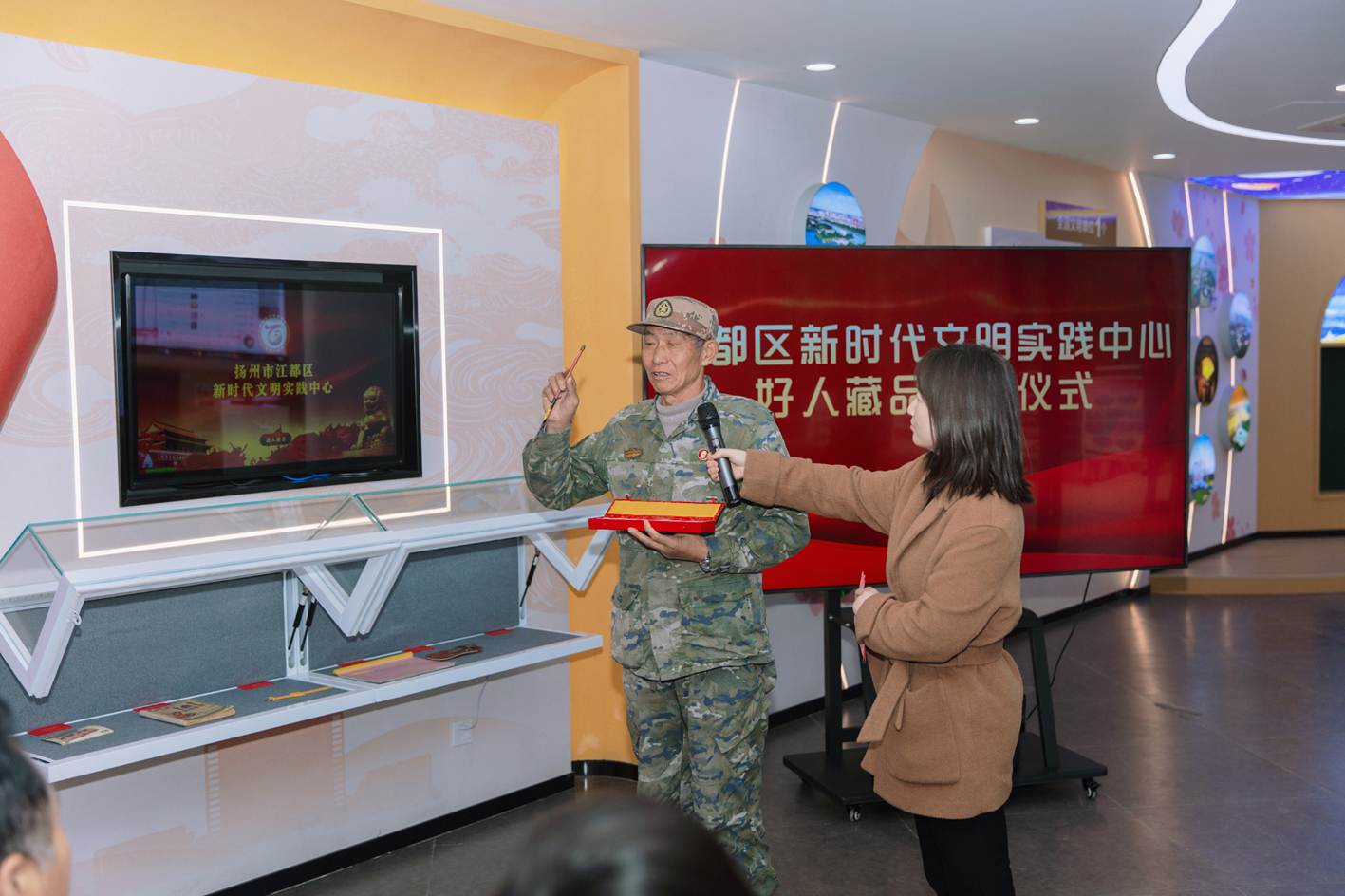 12月4日,江都区新时代文明实践中心,一场朴素而庄重的捐赠仪式举行。全国道德模范提名奖获得者李彬的“边境作战日记本”、江苏省道德模范戴华的“爱心黄手环”、“中国好人”高雁的一叠特殊谢函……六件看似寻常的物品,从此有了一个新的共同身份——江都区新时代文明实践中心的永久珍藏。正是通过这些具象的“传家宝”,让抽象的价值理念变得可触摸、可凝视、可传承,成为新时代文明实践的鲜活样本。