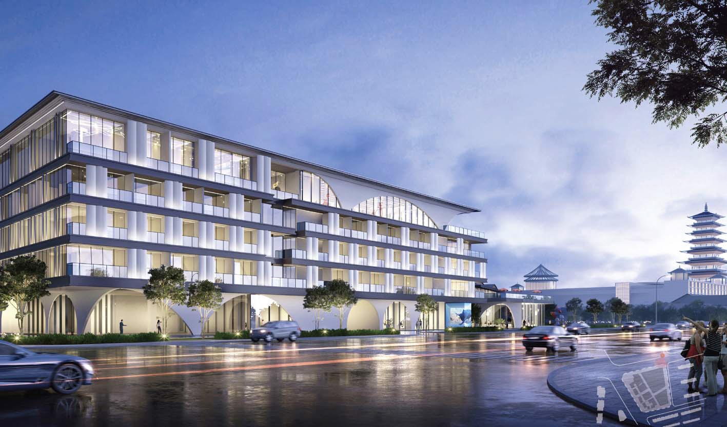 博望文旅休闲街区项目用地面积34亩,建筑面积约5万平方米,由10栋单体组成。其中,1号楼为酒店,计划引入优质品牌,错位开发精品酒店;2号楼为办公区域,建筑面积约6000平方米;3号至10号楼为沿街商业空间,计划打造集办公商业于一体的商业街区,引进文创、零售和餐饮产业,进一步推动运河三湾景区文旅产业发展。街区共有停车位366个,其中地上26个、地下340个。