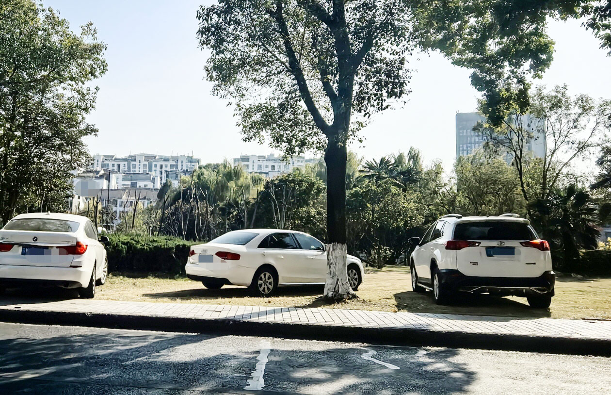 停进绿地的车辆