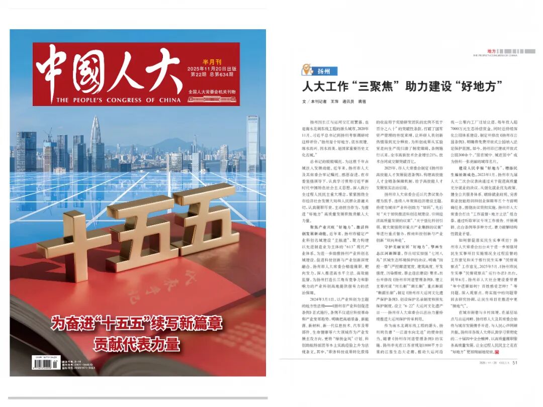 《中国人大》杂志2025年第22期刊发了《扬州:人大工作“三聚焦” 助力建设“好地方”》,现予转发。