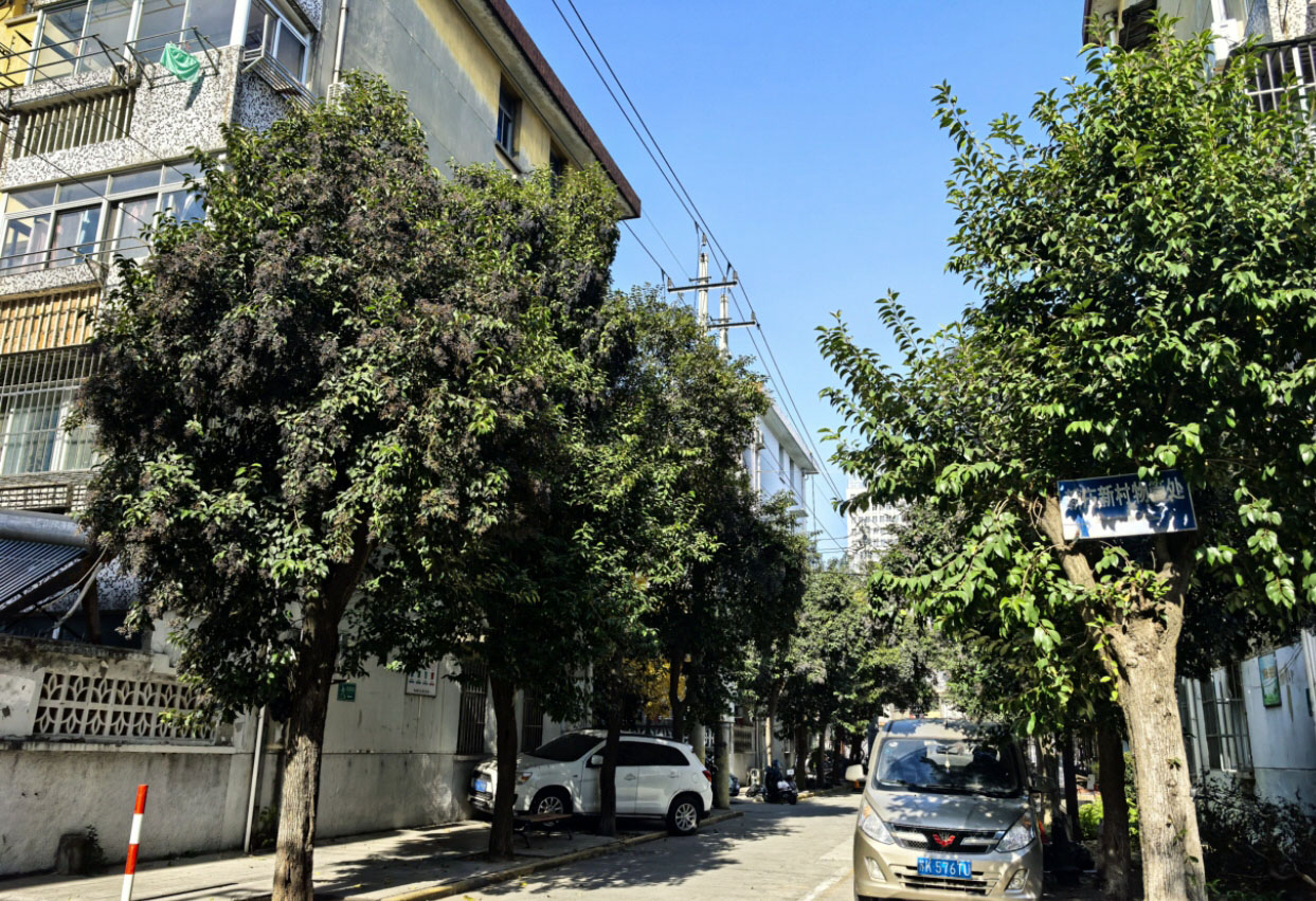 8日,记者在该小区看到,小区主干道两边确实栽种了多棵女贞树,并且每棵树上都是硕果累累的景象。一些女贞树虽然不高,但是枝头已经缀满了果实。多棵树下停着业主的私家车,现场有业主向记者反映,以前物业也修剪过这些女贞树,但是今年还没修剪。小区内部停车位紧张,业主不得不将车停在树下。