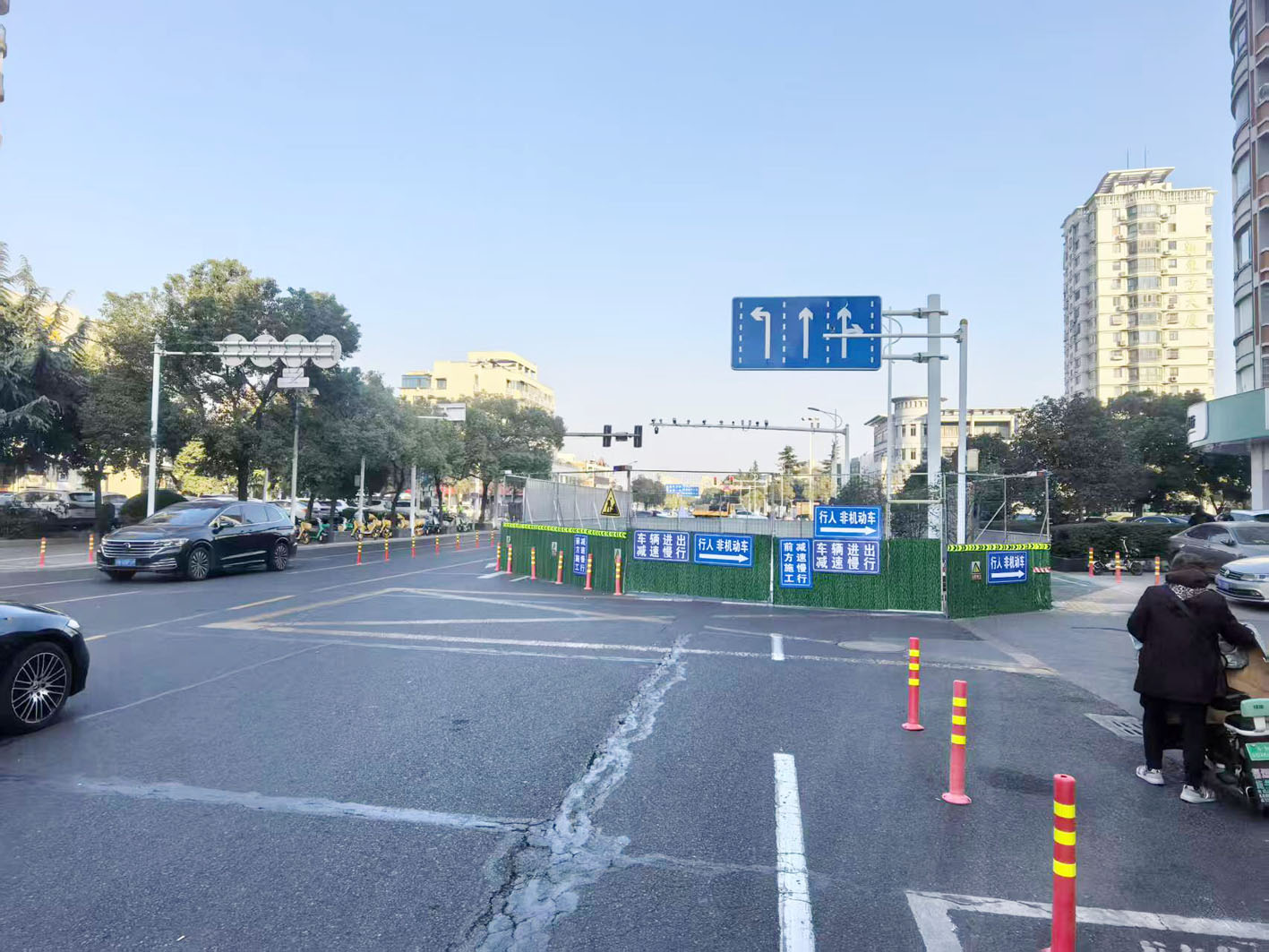 记者现场看到,南半幅路面3股混合车道全部被封闭,东西长约50米,由西向东的车辆和由东向西的车辆,临时都在北半幅混合车道通行,南侧人行道可供非机动车和行人通过。封闭施工使路面通行能力降了一半,该路口又是交通繁忙路口,出行高峰时,市民有条件最好绕行。
